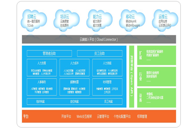 產品基于企業(yè)人力資源創(chuàng)新戰(zhàn)略,通過專業(yè)的人力資源核心平臺、社交化的全員自助服務平臺以及開放的云端應用創(chuàng)新,能承接企業(yè)選育用留四大業(yè)務流程: