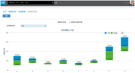 在具體評價某位員工時,系統(tǒng)可以通過成長曲線圖的功能,清晰顯示出該名員工的過往薪酬信息、績效等級和崗位任職等全部變化過程,還可在任意時點以圖形化方式的回放。