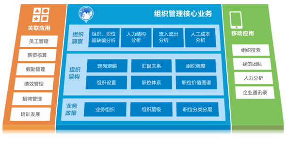 通過組織架構搭建,形成以職位體系為基礎的企業(yè)人力資源管理架構,同時為企業(yè)的員工管理、假勤管理、薪酬核算及管控、績效管理、培訓管理、招聘管理等人力資源業(yè)務的應用提供基礎數(shù)據。